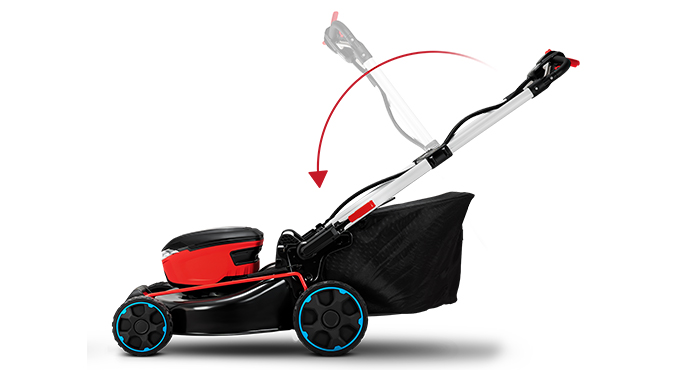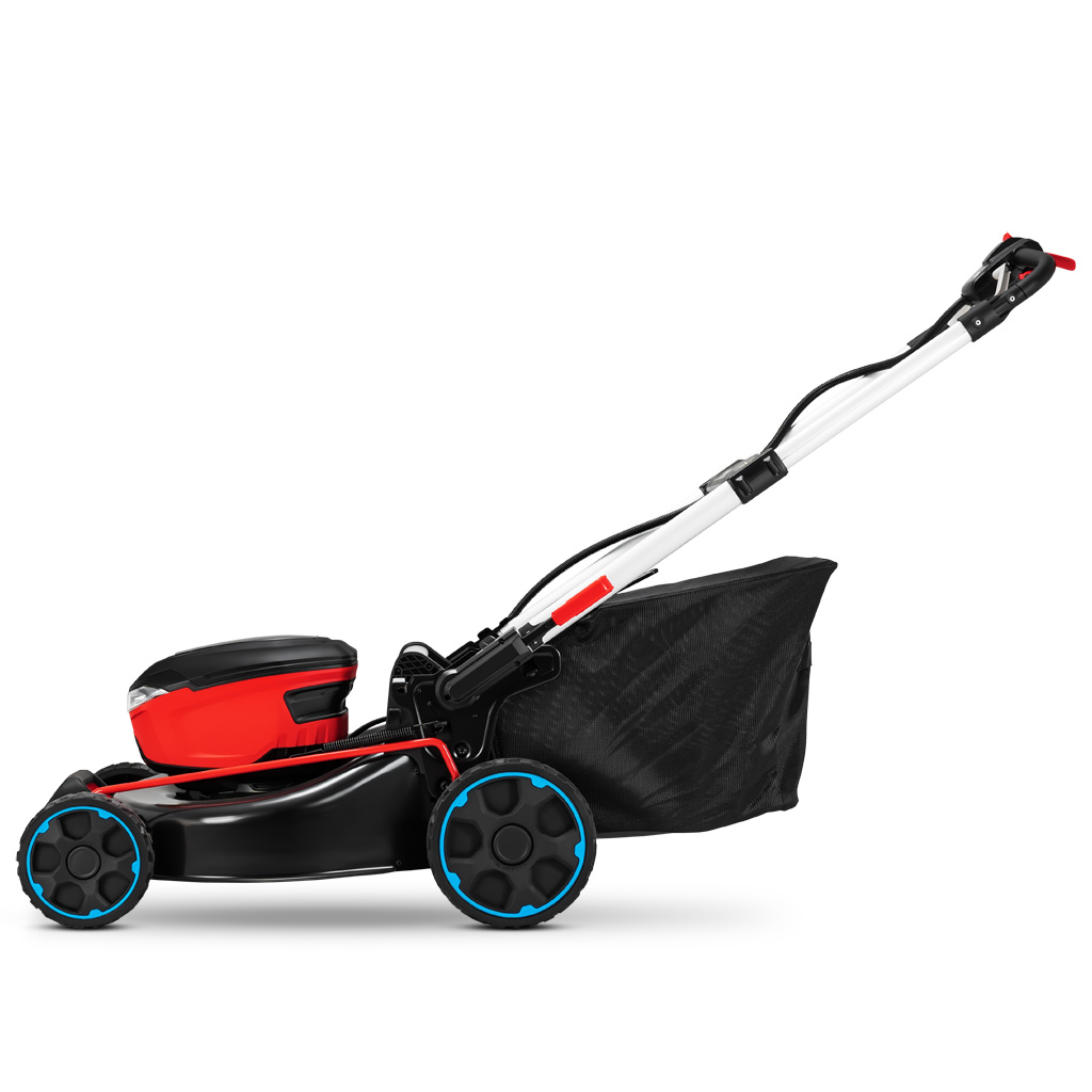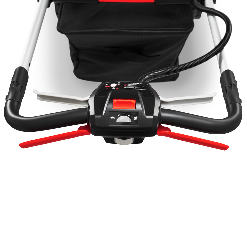 В машине применены 2 высокоэффективных бесщеточных двигателя. Один двигатель находится в заднем мосту и обеспечивает движение вперед. Еще один двигатель установлен на деке и приводят в действие нож, находящийся непосредственно на валу электродвигателя. Скорость вращения ножа регулируется в диапазоне от 3450 до 4600 об/мин автоматически в зависимости от нагрузки - высоты и плотности скашиваемой травы. Такой алгоритм обеспечивает эффективное кошение и экономию заряда аккумулятора. Электрические двигатели, в отличие от бензинового, обеспечивает бесшумное перемещение газонокосилки. Вы слушаете только звуки природы. Применение электрических двигателей, в сравнении с бензиновым, дает полное отсутствие выхлопных газов. Вы косите, наслаждаясь чистым воздухом. Включив газонокосилку, вы обнаружите, что уровень вибрации не изменился. Вибрация от электрического двигателя просто отсутствуют.