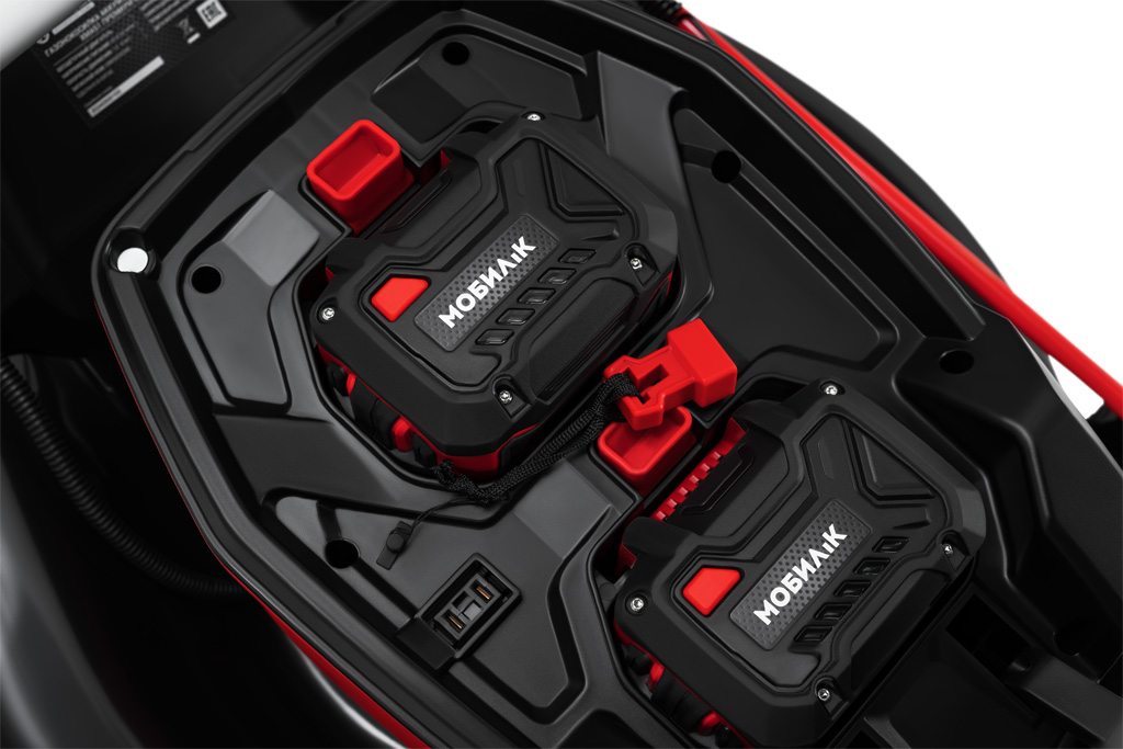 Газонокосилка работает от съемных Li-Ion батарей платформы МОБИЛ К 60 Вольт ПРЕМИУМ, поставляющихся отдельно. Изделие может использовать одну или одновременно две Li-Ion батареи 2,5 Ач или 5 Ач платформы МОБИЛ К 60 Вольт ПРЕМИУМ в любой комбинации. Для зарядки батарей необходимо выбрать одно из зарядных устройств, поставляемых отдельно: XAC66 ПРЕМИУМ или XAC69 ПРЕМИУМ. При наличии трактора или райдера платформы МОБИЛ К 60 Вольт ПРЕМИУМ, вы можете заряжать батареи, установив их в трактор либо райдер, используя их штатное зарядное устройство.