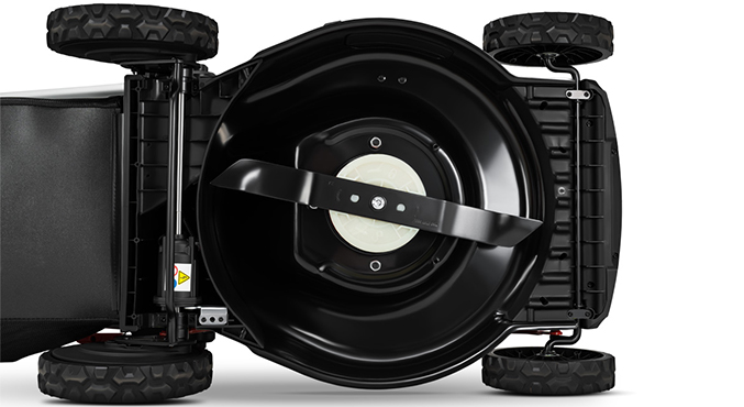 Дека 51 см убирает как скошенную траву, так и опавшие листья. Вращаясь, нож создает мощный воздушный поток, моментально удаляя скошенную в травосборник, на сторону для последующего сбора граблями либо обеспечивая многократное измельчение в режиме мульчирования и возврат на газон.