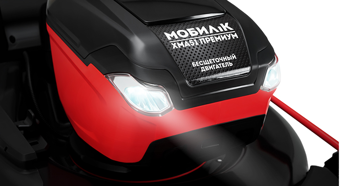Светодиодные фары позволят перемещать газонокосилку и работать ей в условиях недостаточного освещения.