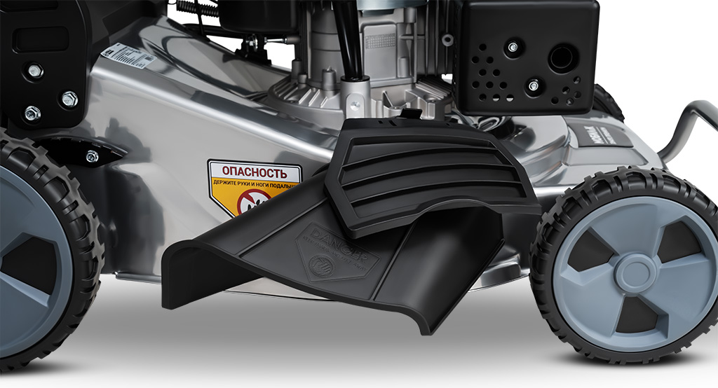 Стальной бампер защитит газонокосилку от механических повреждений при работе, транспортировке и хранении.