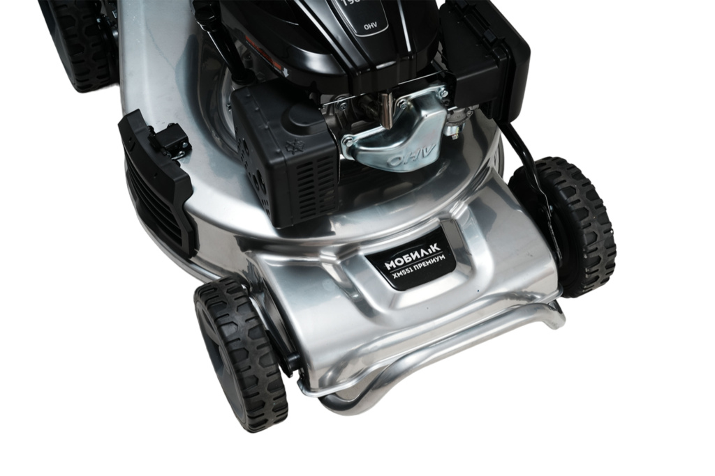 На газонокосилку установлен мощный двигатель Мобил К 1P70 с рабочим объемом 196 см. куб. с вертикальным расположением коленвала и верхним расположением клапанов (OHV). Двигатель имеет профессиональный бумажный воздушный фильтр для надежной защиты цилиндро-поршневой группы.