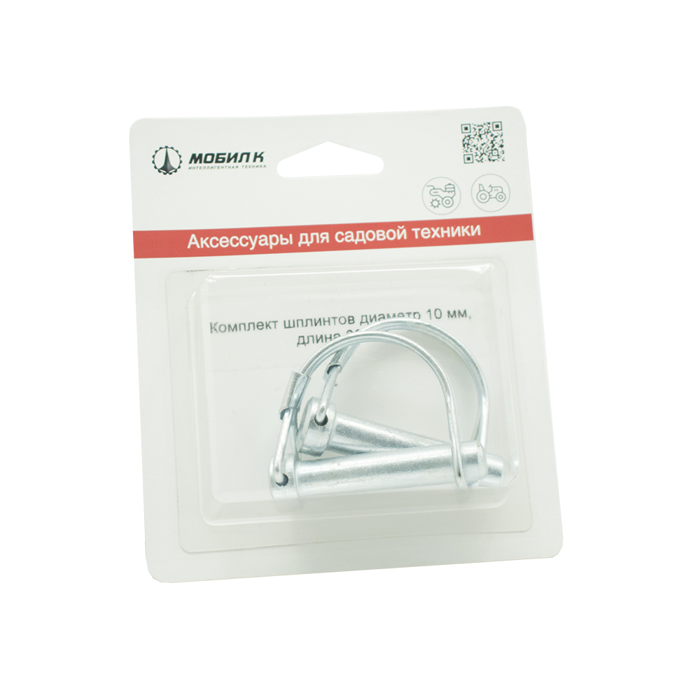 Комплект шплинтов Мобил К диаметр 10 мм, длина 42 мм MBK0018161 предназначен для фиксации соединений деталей садовой техники: резиновых колес, фрез на мотоблоках и культиваторах, шнеков буров и т.д. Шплинт ограничивает осевое перемещение деталей, а С-образный фиксатор, крепящийся за отверстие в головке шплинта, препятствует выпадению шплинта. В комплекте 2 шплинта.