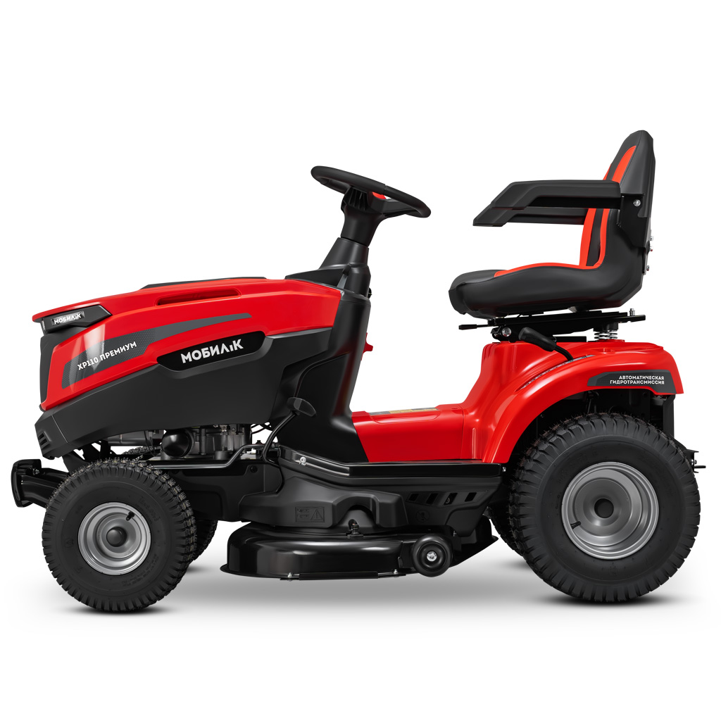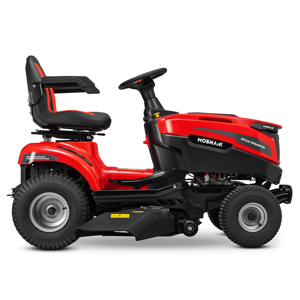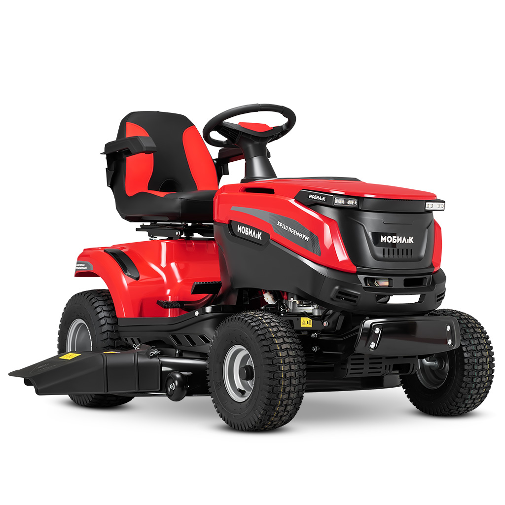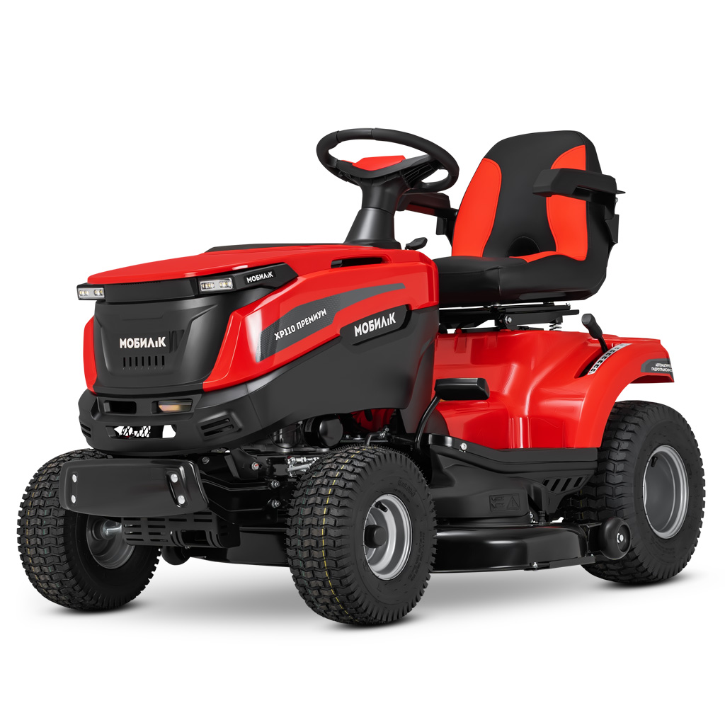 Садовый трактор МОБИЛ К XP110 ПРЕМИУМ MBK0036330 представляет собой высокотехнологичную самоходную машину, сочетающую в себе функции трактора и газонокосилки. Кошение травы производится высокопроизводительной декой шириной 110 см, что позволяет рекомендовать использование машины как на участках от 30 до 100 соток (0,3 - 1 Га) так и на участках более 1 Га. Входящая в комплект поставки задняя сцепка дает возможность работы машины с различным прицепным оборудованием: прицепами, газонными катками, разбрасывателями семян, аэраторами и др., что наделяет ее функциями трактора. Трактор приводится в действие бензиновым двигателем Briggs&Stratton 4175 EX с чугунной гильзой цилиндра и системой смазки под давлением, повышающими моторесурс и позволяющими работать машине целую рабочую смену. В такторе применена автоматическая бесступенчатая гидротрансмиссия без необходимости переключения передач. Двигатель и трансмиссия обеспечивают движение вперед со скоростью до 8 км/ч и движение назад со скоростью до 4,5 км/ч.