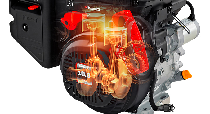 Мощный двигатель специально разработан для запуска и работы в самых сложных зимних условиях. В двигателе обеспечен свободный проход воздуха через безпоролоновую систему фильтрации, что препятствует обмерзанию при работе в снежной среде. Такая система сохраняет воздушно-топливную смесь в правильной пропорции, что дает стабильную работу во время уборки снега. Все части двигателя закрыты от попадания снежной пыли. Это исключает обледенения и намерзания органов управления двигателем, в отличие от летних вариантов исполнения, где заклинивание подвижных элементов двигателя может привести к выходу его из строя. В двигатели установлен специальный карбюратор, который позволяет запускать двигатель и работать при низких отрицательных температурах. Также в двигатели установлена эргономичная рукоять для запуска в рукавицах, маслозаливная горловина высокого профиля и электрический стартер.