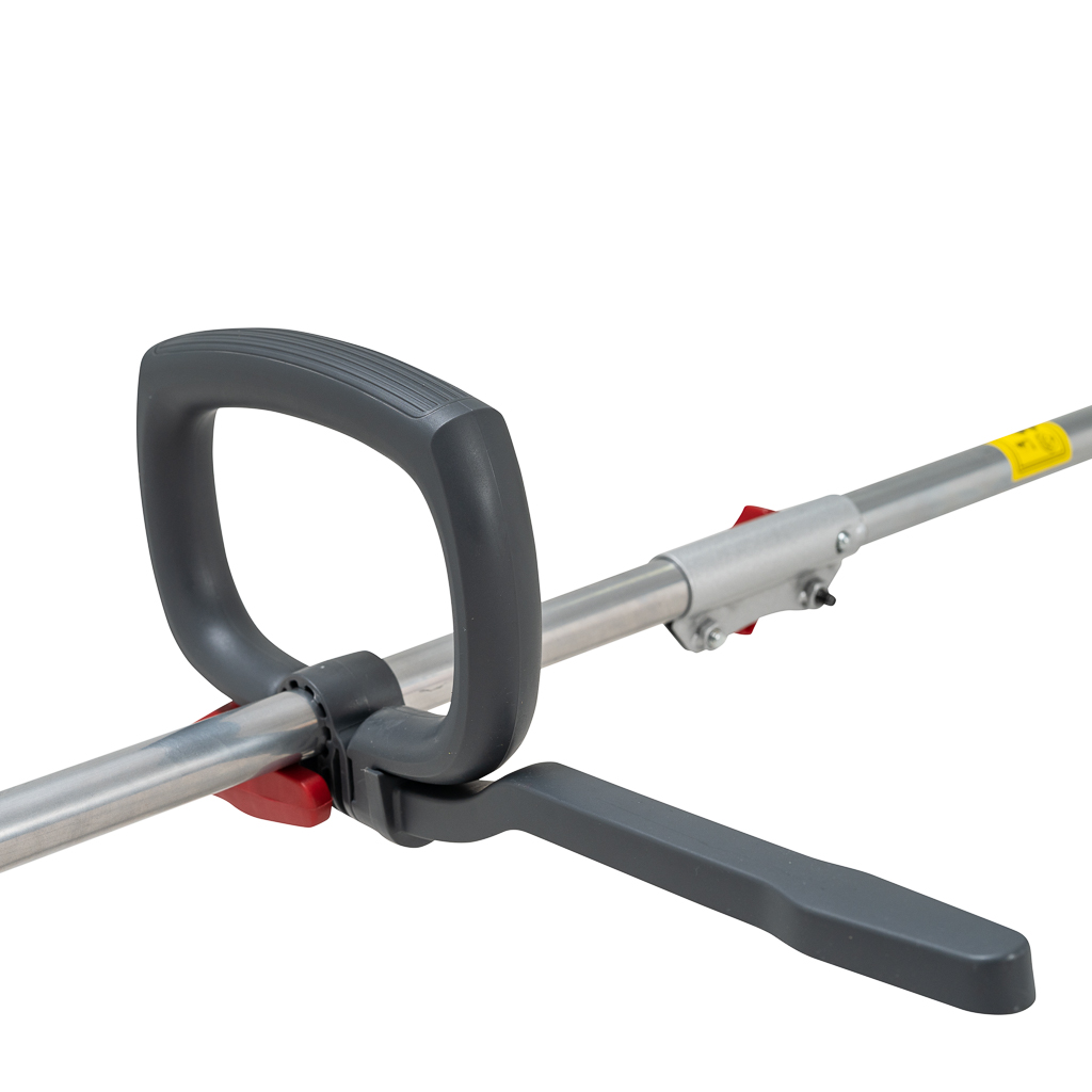 • Регулируемая по углу наклона рукоятка с эластичнымм упором для ноги позволит пользоваться косой оператору любого роста.